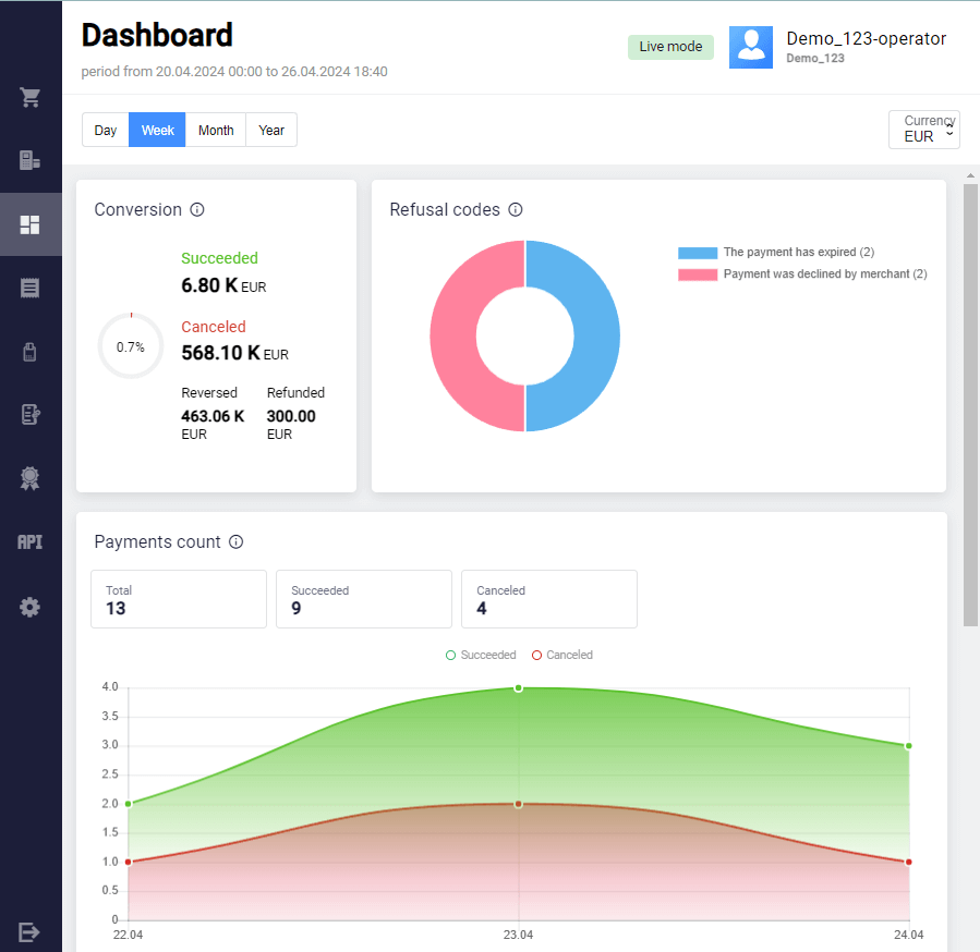 From your Personal Area you can issue full or partial refunds on payments in the Succeeded status. This status means that the funds have already been captured.