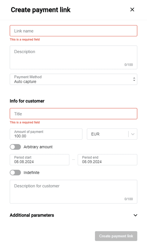 | Delayed forced capture enabled | If enabled, allows you to specify in the Capture time (in hours) the number of hours after which two-step payments will be automatically completed. |