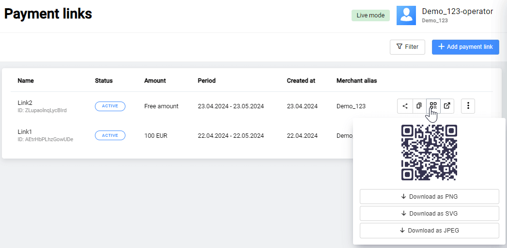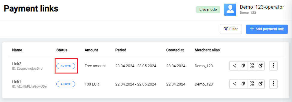 | Created date | Date and time of payment creation. |