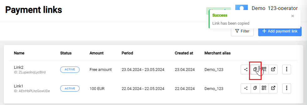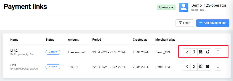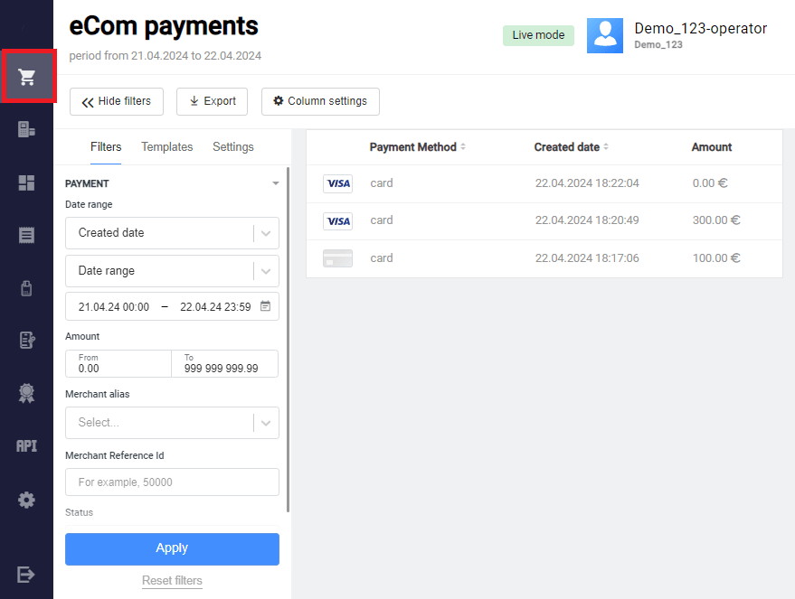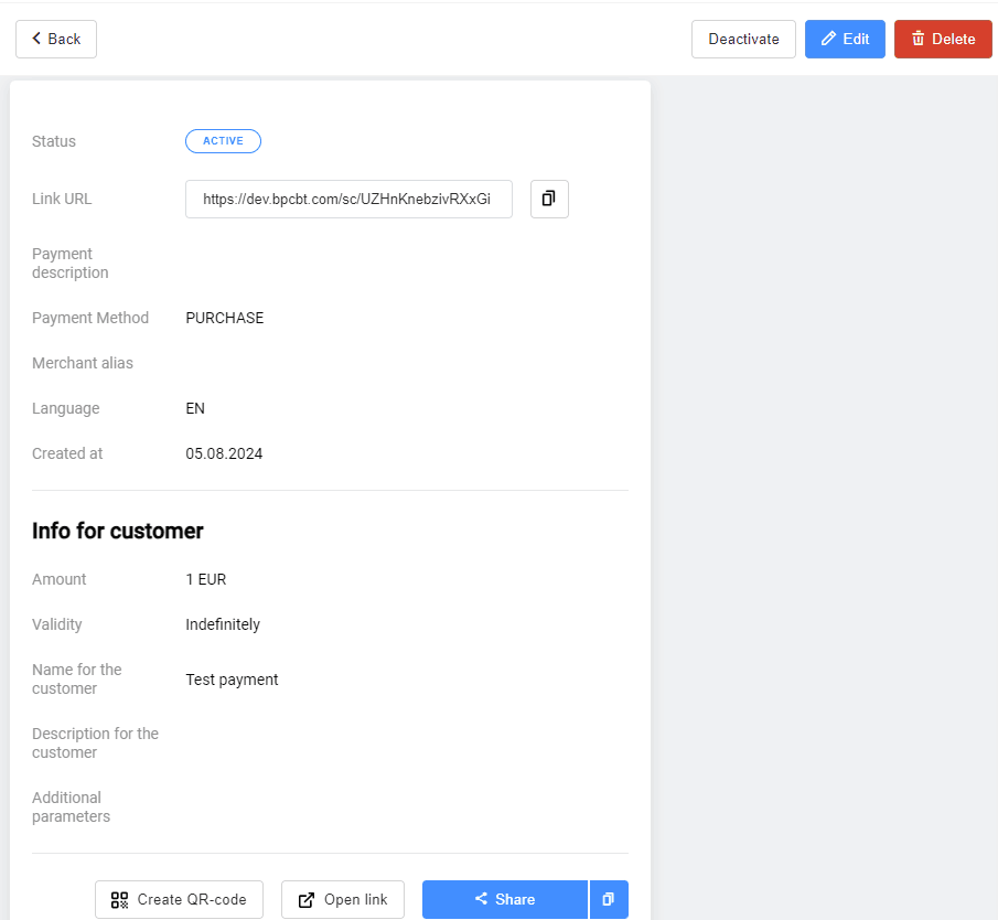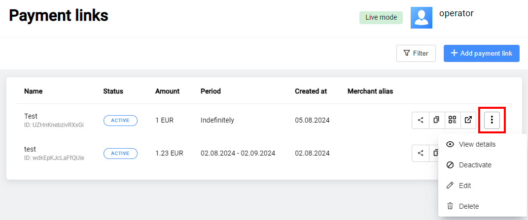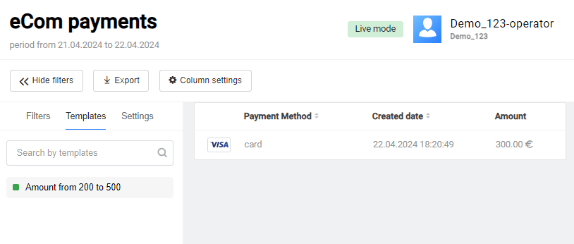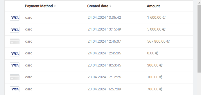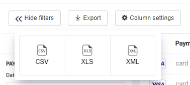 | Operation type | Operations made while working with an payment. |