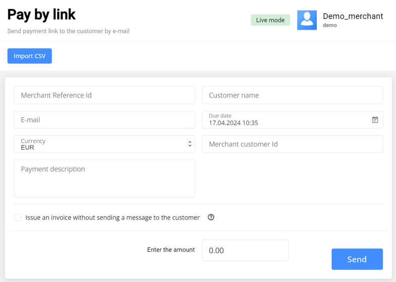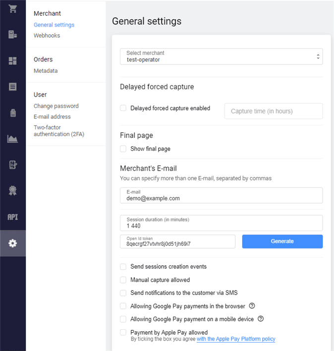 | Send session creation events | If enabled, the merchant will receive an email notification of the session creation. |