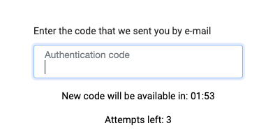 - Once two-factor authentication via E-mail is enabled, at the next logons to your Personal Area, you are asked to enter 4-digit code sent to your e-mail address: