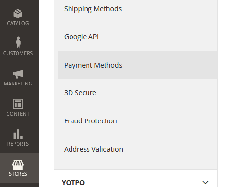 - In the left menu select Stores > Configuration (see the figure below).