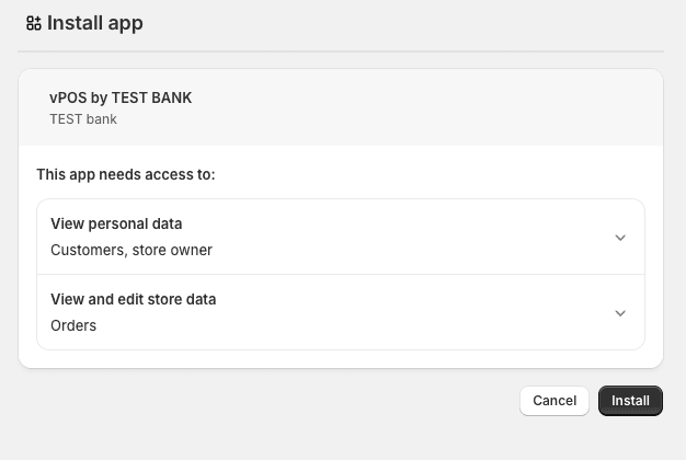 To install Shopify payment plugin, contact the support team. An example of what the installation screen will look like: