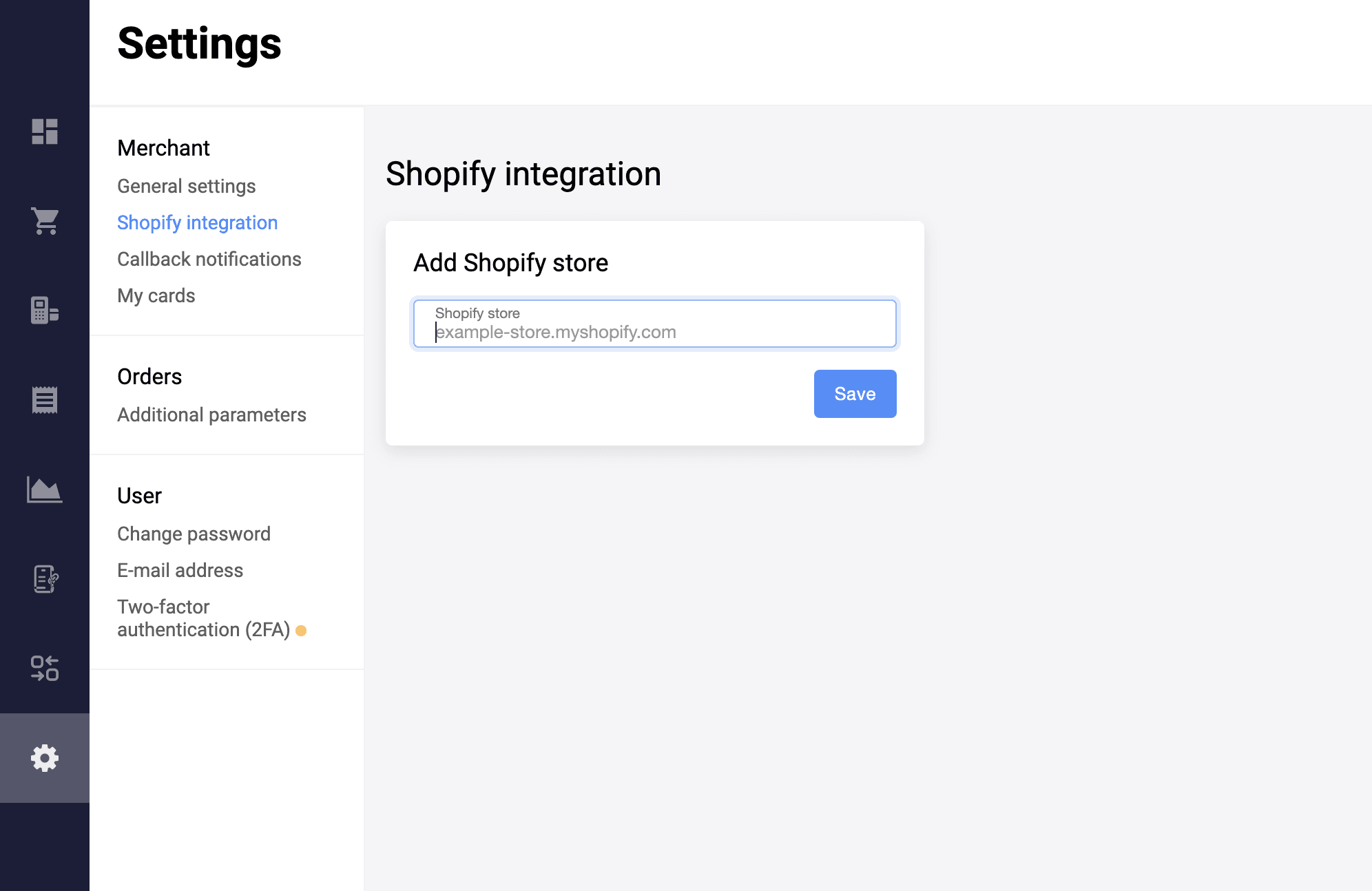 - Go to the Settings/Shopify integration page.