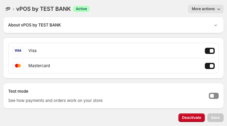 - Select Test mode to enable test mode for the plugin.